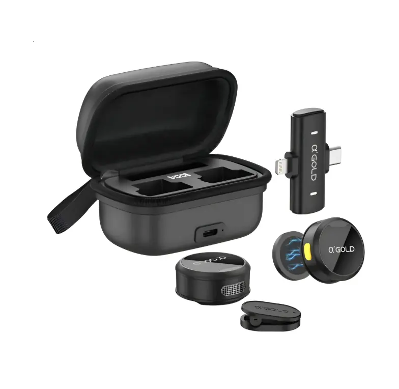 O microfone estilo moeda mais desejado. Combo para câmeras e celulares.
